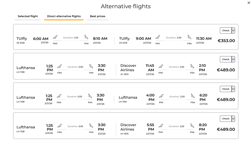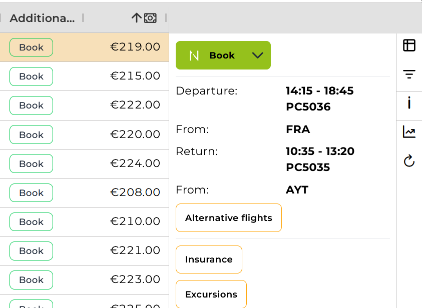 Alternatively, click the “i“ icon on the right side of the offer view to see flight alternatives directly.