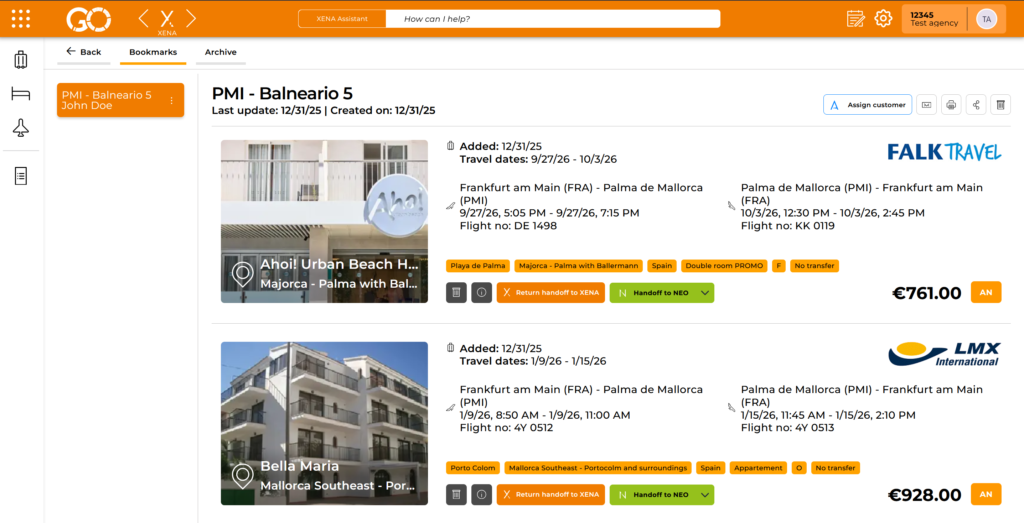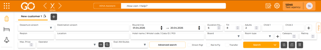 With the “Find Flights” feature in XENA, you can search for suitable flight connections for your clients directly within the offer view – saving you time and presenting the best options at a glance.