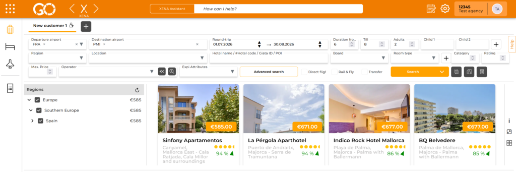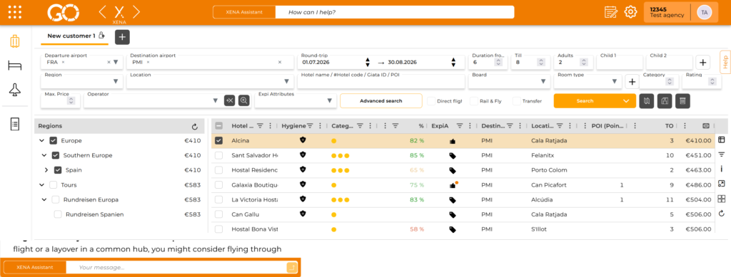 With the “Points of Interest & Attractions” feature in XENA, you can not only search for accommodations but also specifically look for hotels near well-known attractions. This saves time and helps you quickly find the right hotel for your clients.